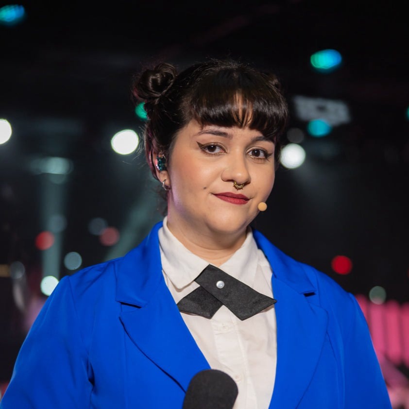 Comunicadora profissional de eSports e a primeira mulher a narrar o CBLOL e o Circuito Desafiante.